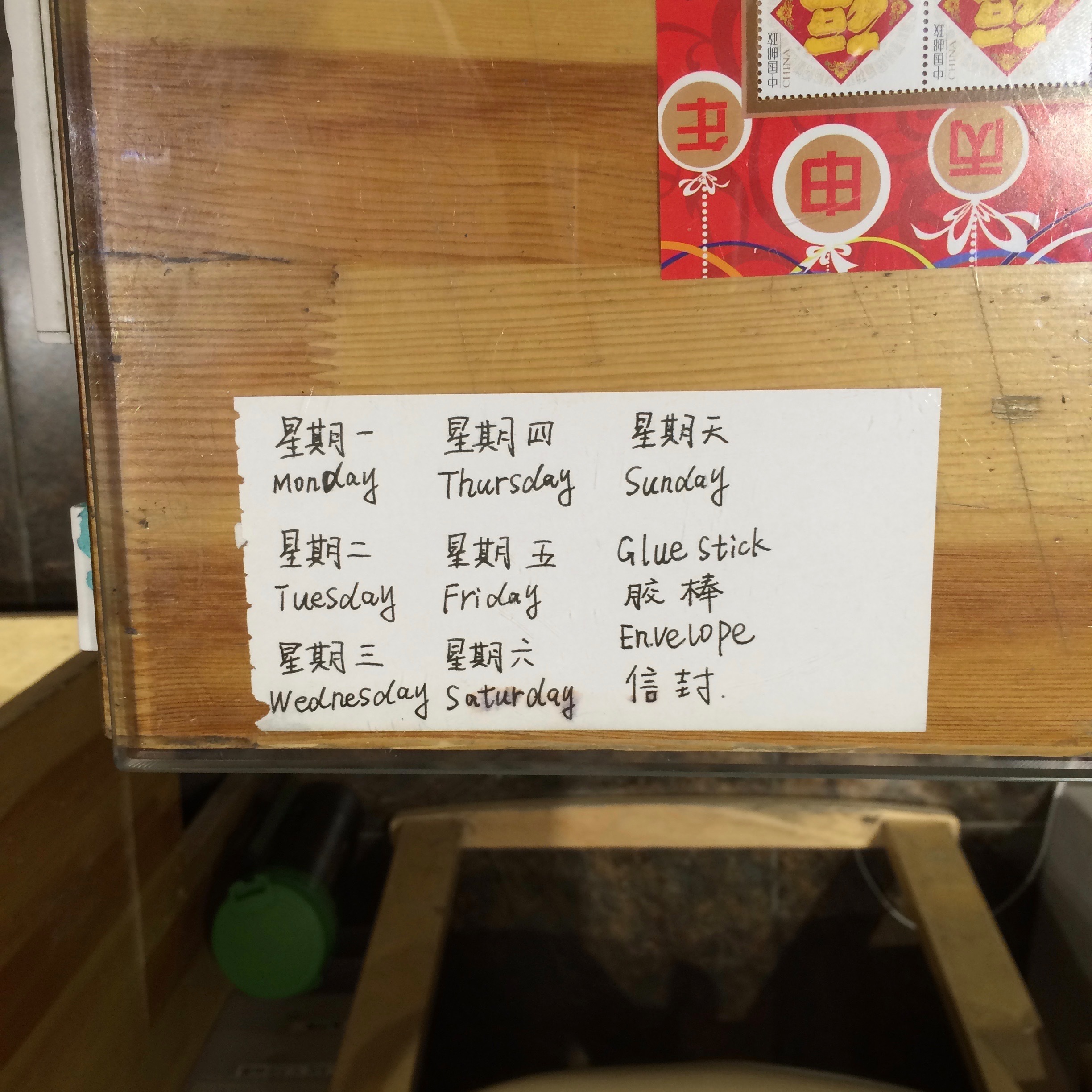 we mistook the normal mrt exit for the airport express entrance, and we ended up having to scan our luggage twice. we arrived at the airport two hours early, checked in (i’d already checked in 48 hours prior) and dropped off our baggage. we went to post our postcards at level 1, at a branch of China Post. xuan was introduced to the wonderful contraption of the rolling glue, which was stationed outside the post office, on top of the post box, for the public’s convenience. xuan quipped that she had never seen rolling glue in her life: the contraption allowed users to roll their stamps on the roller, and glue would be applied onto the stamps. xuan also went into the post office to confirm that local mail cost ¥0.80, as she was sending a postcard to xc’s dorm. then we walked around the airport, looking for keychains for my boss. we entered the departure area and we bought some last minute souvenirs, including the keychain. before we boarded the plane, i bought a Cocoa Cappuccino from the starbucks near the departure gate. we contemplated buying the frozen dumplings, only to realise that they were being sold only in bags of five, and we did not have the stomach nor the space to store the frozen dumplings.
