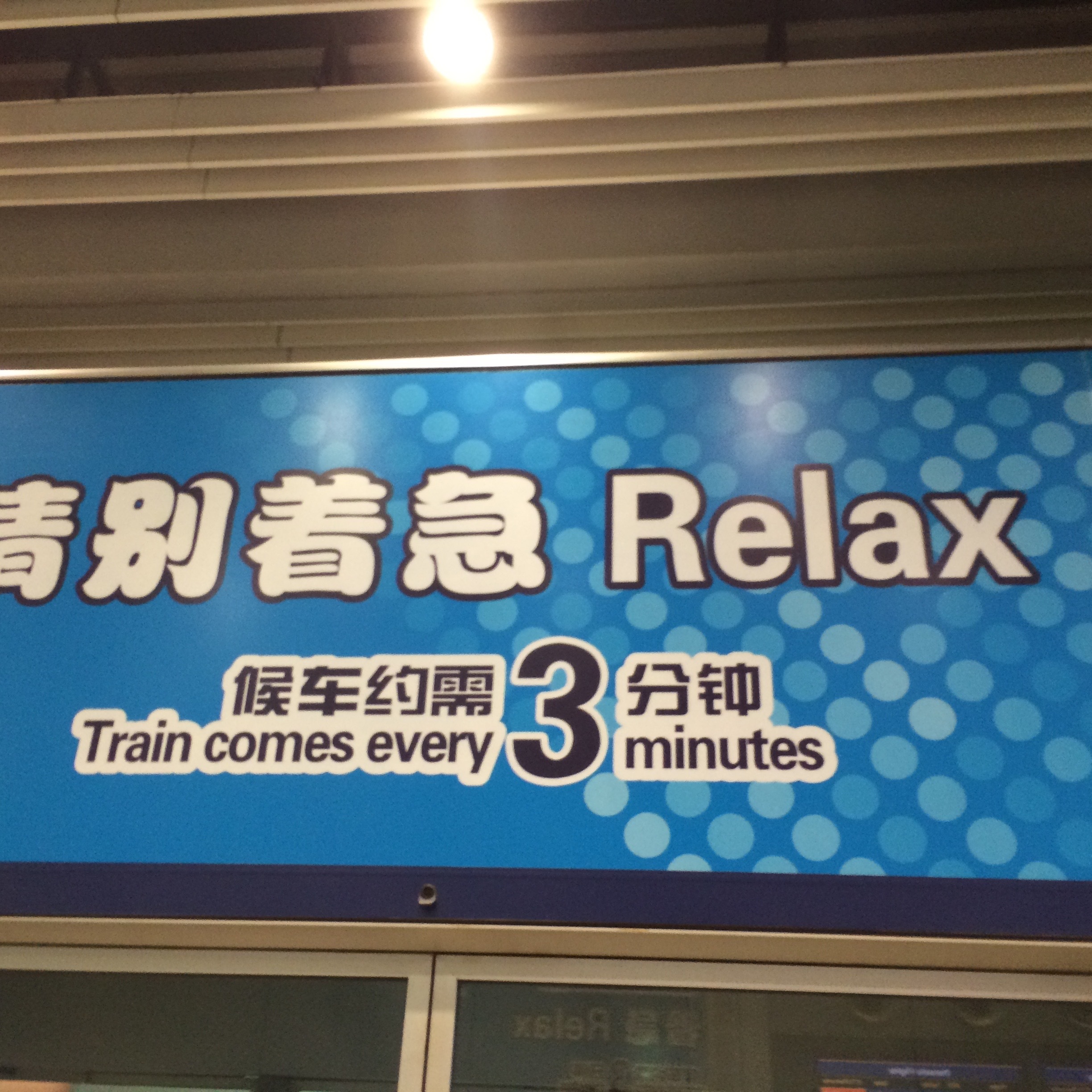 when we arrived, hx asked us where we were and we said that we were still on the plane, taxiing to the terminal gate. she complained that there was no air-conditioning at the airport terminal. we got off, went to the toilet, walked leisurely to the immigration counters. there was this long queue, it had to be at least 5 lines long, you know the kind where it’ll snake to and fro. it kept winding back and forth. the queue was long but it took a very short time for us to get to the front, and we cleared immigration and took this train to the baggage claim area. there was a sign that said “Relax” - 别着急, assuring passengers that the train came very frequently and there was no need for pushing and shoving.